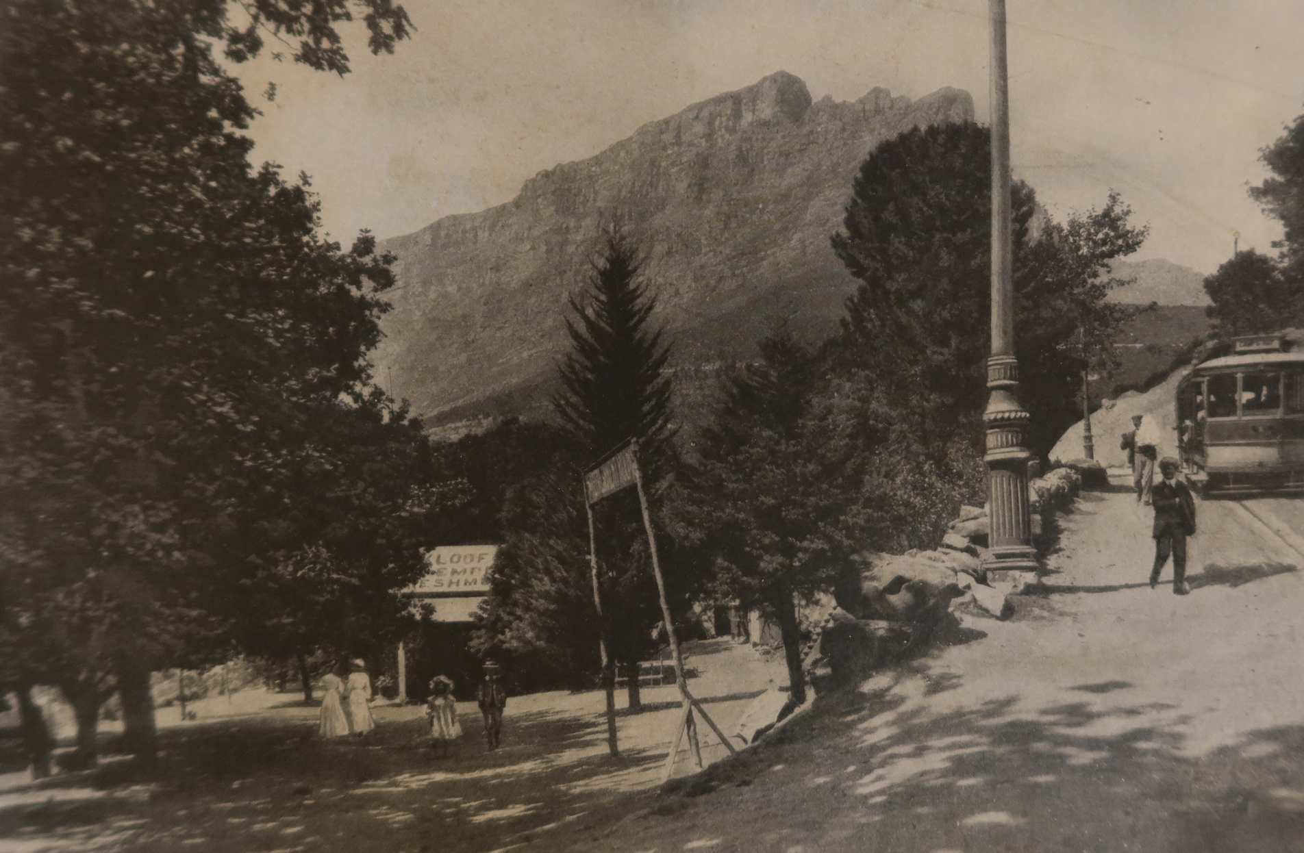 Early 1900s: Kloof Nek Road, with the electric mountain tramway passing en route to Camps Bay.